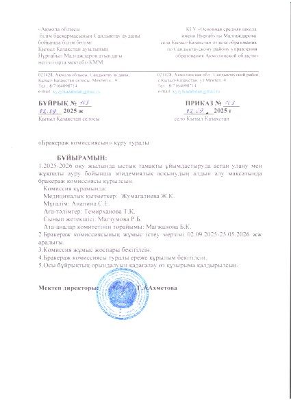 Бракераж комиссиясының 2025-2026 жылға арналған бұйрығы